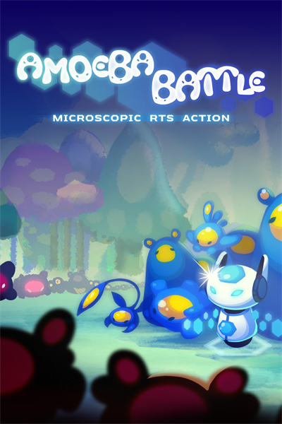 Amoeba Battle is a new breed of real-time strategy game where you control versatile amoebas in the battle for the microscopic world. Unlike other RTS games, there are no bases to build - new amoebas are created through the miracle of binary fission! First though, your amoebas must forage for food in the beautiful yet alien environments that make up their world. Once well fed, these amoebas can replicate into two identical amoebas of the same type, doubling your army with a press of a button! But multiplying amoebas won't always be enough. You will need to introduce mutations to evolve your weaker amoebas into stronger species. Experiment with different amoeba combinations to field a diverse force that can face any threat! TAKE BACK THE MICROSCOPIC WORLD - Stop the infection and destroy its source in the varied and intense twelve mission campaign with four difficulty levels. 18 PLAYER FREE FOR ALL - Compete against other players in our 18-player free-for-all Versus mode or take on the AI in Skirmish, either solo or with up to two friends. DELIGHTFUL ART STYLE - Journey through four exotic landscapes and battle with nine species of amoeba, all delicately rendered using a remarkable fusion of watercolors and pixel art. Experience an innovative real-time strategy game on a never-before-seen scale and battle for primordial soup-remacy in Amoeba Battle!